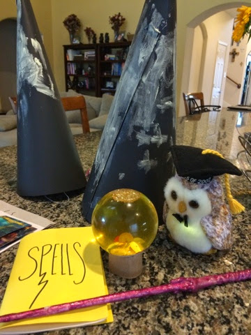 We got ready to go to Hogwarts, finding our owls and supplies, like cauldrons and spellbooks, and making a few also, like hats and wands.